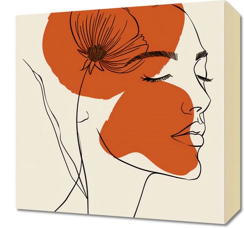 Obraz z serii minimalistyczne zatytułowany Ciepło Kwiatu to połączenie delikatności kobiecego profilu z silnym, graficznym motywem kwiatu. Ciepła, pomarańczowa plama w kształcie koła harmonizuje z konturem twarzy kobiety, a umieszczony na niej kwiat stanowi zarówno dekorację, jak i symboliczny akcent. Linie szkicu są subtelne, ale wyraziste, podkreślające spokojne, zamyślone wyrażenie twarzy. Obraz łączy w sobie prostotę z elegancją, idealnie pasując do przestrzeni, gdzie sztuka ma odzwierciedlać spokój i wewnętrzne piękno, takich jak sypialnie, salony, a nawet nowoczesne biura.