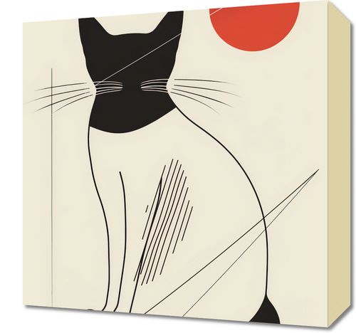 Obraz z serii minimalistyczne zatytułowany Czerwony Krąg. Obraz prezentuje stylizowaną sylwetkę czarnego kota, który siedzi tyłem, skupiony na czerwonym kręgu, który może symbolizować zachodzące słońce. Prostota formy i kontrastowe barwy tworzą spokojną, lecz sugestywną kompozycję. Cień kota i jego wyraziste wąsy dodają ilustracji charakteru i głębi. To dzieło sztuki jest idealne dla tych, którzy cenią sobie zarówno minimalizm, jak i symboliczne znaczenie w swoim otoczeniu. Obraz będzie pięknym akcentem w każdej przestrzeni, wnosząc odrobinę tajemnicy i spokoju. Idealnie pasuje do pomieszczeń o współczesnym wystroju, takich jak nowoczesne salony, sypialnie lub domowe biura, a także do miejsc, które są sanktuarium relaksu i kontemplacji.
