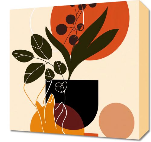 Obraz z serii minimalistyczne zatytułowany Dotyk Naturalności. Artystyczna kompozycja łączy w sobie organiczne i geometryczne formy, tworząc ciepłą, harmonijną całość. Dłoń delikatnie trzymająca roślinę symbolizuje połączenie człowieka z naturą, podczas gdy zestawienie kolorów ziemi odzwierciedla naturalne piękno. Kompozycja w różnych odcieniach pomarańczy i zieleni na jasnym tle wywołuje uczucie spokoju i prostoty.Ten obraz jest idealny dla przestrzeni, które cenią związek z naturą i minimalistyczne podejście do sztuki. Doskonale wpasuje się w stylowe salony, ciche zakątki do odpoczynku, przytulne sypialnie lub jasne biura. Doda każdej przestrzeni subtelnego uroku i naturalnego spokoju.