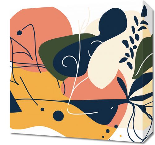 Obraz z serii minimalistyczne zatytułowany Dynamika Wizji. Grafika prezentuje żywą kompozycję abstrakcyjnych kształtów i linii, które tworzą energiczny, ale harmonijny obraz. Kolorystyka oscyluje wokół ciepłych tonów pomarańczu, żółci i bieli, z akcentami głębokiej zieleni, co nadaje pracy witalność i świeżość. Idealnie sprawdzi się jako ożywczy element w przestrzeniach minimalistycznych, takich jak nowoczesne biura, kreatywne studia, czy też domowe atelier. Może stanowić też centralny punkt w pomieszczeniach o stonowanej kolorystyce, przynosząc energię i ciepło do wnętrza. Wprowadzi dynamizm do każdej przestrzeni, zachowując przy tym poczucie elegancji i współczesnego designu.