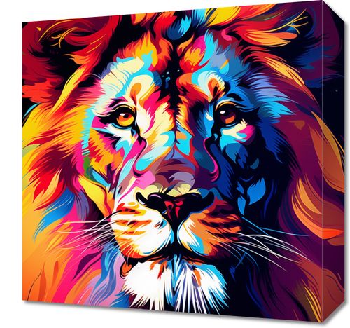Obraz z serii abstrakcja zatytułowany Kolory Królestwa. Ten odważny i dynamiczny obraz przedstawia króla zwierząt - lwa, którego grzywa została zinterpretowana w eksplozji żywych, abstrakcyjnych barw. Wzór i intensywność kolorów podkreślają majestat i siłę lwa, dodając mu nowoczesnego i artystycznego charakteru. To dzieło sztuki przemawia mocą i wolnością, będąc idealnym wyborem dla przestrzeni kreatywnych, odważnych i pełnych energii, takich jak nowoczesne salony, pracownie artystyczne, czy przestrzenie młodzieżowe.