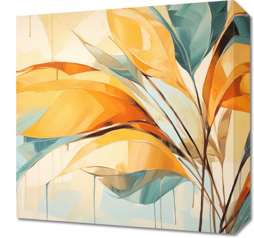 Obraz z serii abstrakcja zatytułowany Kolory Natury. Artystyczna interpretacja tropikalnych liści, których dynamiczne linie i żywe kolory od ciepłej pomarańczy do chłodnej mięty tworzą poczucie ruchu i życia. To dzieło sztuki przemawia swoją elegancją i subtelną grą kolorów, które mogą przywołać na myśl spokój i piękno natury. Idealnie sprawdzi się jako centralny element w przestronnych wnętrzach, takich jak nowoczesne salony, recepcje hotelowe czy relaksacyjne spa, gdzie może stanowić źródło inspiracji i świeżości.