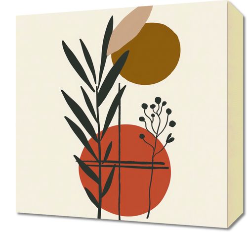 Obraz z serii boho zatytułowany Kontrast w Botanice to urzekająca gra form i kolorów, łącząca elementy natury z abstrakcyjną sztuką. Dominujące ciepłe odcienie ziemi - oranż, brąz i subtelny róż - tworzą tło dla silnie zarysowanych, ciemnych roślinnych motywów. Kompozycja, pełna elegancji i współczesnego stylu, przyciąga wzrok i dodaje wnętrzu przytulności. Obraz ten znajdzie swoje miejsce w minimalistycznie urządzonych pokojach, gdzie może stanowić główny punkt dekoracyjny lub subtelne tło dla innych elementów wystroju. Doskonały wybór dla tych, którzy pragną wprowadzić do swojego domu szczyptę natury w nowoczesnej oprawie.