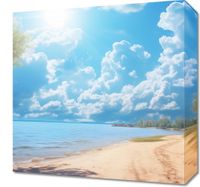 Obraz z serii pejzaże, zatytułowany Letni Dzień. Jasne słońce świecące przez delikatne chmury na błękitnym niebie, plaża z miękkim, złocistym piaskiem oraz przybrzeżne trawy łagodnie kołysane przez letni wiatr tworzą obraz pełen ciepła i spokoju. Ten pejzaż przynosi uczucie relaksu i beztroski, idealne dla tych, którzy chcą przynieść do swojego domu atmosferę wakacyjnego odpoczynku. Doskonale nadaje się do salonów, przestrzeni wypoczynkowych oraz pomieszczeń, gdzie chcemy wprowadzić elementy natury i świeżości.