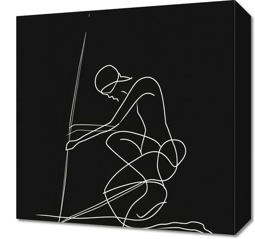 Obraz z serii wnętrza zatytułowany Linia. Ta sztuka przedstawia pojedynczą, białą linijką nakreślony zarys postaci ludzkiej w dynamicznej i wyrazistej pozie. Czystość linii na czarnym tle tworzy silny kontrast, który przyciąga wzrok i pobudza wyobraźnię, pozostawiając wiele miejsca dla interpretacji emocji i ruchu. Obraz jest przykładem, jak minimalizm w sztuce może przekazywać złożone i głębokie przesłanie, sprawiając, że jest to idealny wybór dla przestrzeni współczesnych, od galerii po minimalistyczne domowe wnętrza, które cenią sobie elegancję i prostotę.