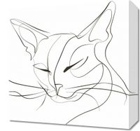 Plakat z serii wnętrza zatytułowany Linijny Kot. Prezentuje minimalistyczny, jednoliniowy rysunek kota. Sylwetka zwierzęcia została zredukowana do kilku płynnych linii, które z gracją oddają kształt głowy, uszu i rysy twarzy, w tym oczy i nos. Styl ten jest znany z tego, że w elegancki sposób uchwyci esencję swojego przedmiotu przy minimalnym użyciu detali. Tło obrazu jest czyste i jasne, co pozwala zarysom kota stać się dominującym elementem. Ten rodzaj sztuki idealnie nadawałby się do nowoczesnego wnętrza, które ceni sobie elegancję i prostotę, i może przyciągać wzrok jako subtelny, ale wyrafinowany element dekoracyjny.
