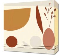 Obraz z serii boho Łodygi Wizji.Na grafice widzimy kompozycję geometryczną złożoną z delikatnych kształtów i linii. Ciepła paleta barw z przewagą odcieni pomarańczu, beżu i brązu tworzy przytulną atmosferę. Wyraźne, organiczne linie przypominają łodygi roślin i delikatne kwiatostany, które kontrastują z płaskimi, geometrycznymi formami w tle. Całość ma charakter relaksujący i minimalistyczny, sugerując spokój i harmonię. Obraz ten mógłby być świetnym dodatkiem do wnętrz w stylu skandynawskim lub nowoczesnym, gdzie kluczową rolę odgrywa prostota i naturalne piękno.