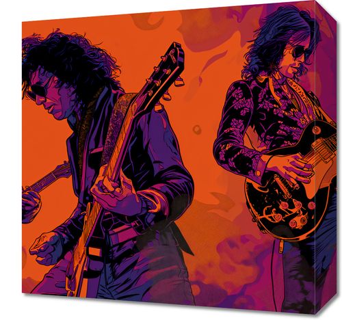 Obraz z serii pop art zatytułowany Mamy To Flow. Obrazuje trzech gitarzystów zanurzonych w pasji muzyki, z instrumentami w rękach, oddając ducha rock'n'rolla. Intensywne kolory, w tym głębokie odcienie pomarańczu i fioletu, tworzą tło, które pulsują energią i rytmem. Obraz oddaje esencję koncertowej atmosfery i jest hołdem dla klasycznych rockowych wirtuozów. Znakomicie wpasuje się w przestrzenie kulturalne, takie jak sale koncertowe, studia muzyczne, jak również jako żywiołowy akcent dekoracyjny w młodzieżowych pokojach czy salonach miłośników muzyki.