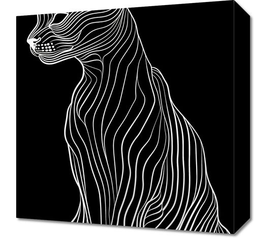 Obraz z serii abstrakcja zatytułowany Minimalny Kontur prezentuje minimalistyczny i stylowy wizerunek kota, wykonany w technice linii konturowych. Czyste, białe linie o zróżnicowanej grubości tworzą sylwetkę kota na jednolitym, czarnym tle, dając efekt elegancji i prostoty. Kompozycja skupia się na gracją i wyrafinowaną postawę kota, z wyraźnie zaznaczonymi uszami, oczami i kształtem ciała. Całość tworzy hipnotyzujący obraz, który jest zarazem współczesny i ponadczasowy, idealny dla miłośników minimalizmu, a także dla tych, którzy cenią sobie kreatywne podejście do tradycyjnego portretowania zwierząt. Obraz ten świetnie wkomponuje się w nowoczesne wnętrza, stanowiąc subtelny, ale wyrazisty akcent dekoracyjny.