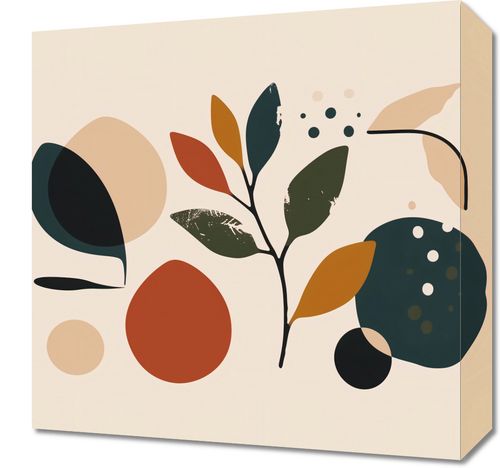 Obraz z serii minimalistyczne zatytułowany Ogród Melancholii. Grafika ta przedstawia kolekcję stylizowanych liści i kształtów, które tworzą spokojną i harmonijną kompozycję w ciepłej palecie barw - od głębokiego granatu po delikatne odcienie beżu i ochry, z akcentami w kolorze terrakoty. Każdy element graficzny, choć uproszczony, jest bogaty w detale, co nadaje plakatowi subtelną głębię i teksturę.Ten obraz będzie pięknie wyglądał w wnętrzach, gdzie naturalne materiały są na czele - takich jak drewno, kamień lub lniane tkaniny. Jego prosta, ale elegancka estetyka sprawia, że jest to idealny dodatek do salonu, jadalni, a nawet kuchni, wprowadzając do pomieszczenia spokój i równowagę.