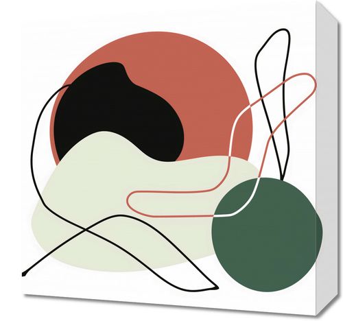 Obraz z serii minimalistyczne zatytułowany Płaszczyzny. Praca ta to kompozycja złożona z płynnych linii i geometrycznych kształtów w stonowanej palecie kolorystycznej, zawierającej odcienie czerwieni, czerni, zieleni i pastelowej mięty. Abstrakcyjne formy na plakacie splatają się, tworząc zrównoważoną i spokojną całość.Ten obraz będzie świetnie pasował do współczesnych wnętrz, które cenią prostotę i czystość formy. Może stanowić elegancki akcent w biurze, salonie czy też minimalistycznym foyer. Harmonijne połączenie kolorów i form sprawi, że będzie to doskonały wybór dla przestrzeni, gdzie design jest świadomie ograniczony, ale pełen charakteru.