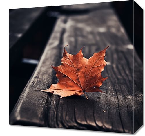 Obraz z serii natura zatytułowany Pojedynczy Liść. Ten obraz przedstawia pojedynczy, jasnobrązowy liść klonu, spoczywający na ciemnym, drewnianym tle ławki parkowej. Głębokie, nasycone kolory i wyraźny kontrast między liściem a ciemnym tłem, wywołują uczucie intymności i refleksji. Idealny dla przestrzeni, które chcą oddać hołd zmienności sezonów i subtelnemu pięknu natury, ten plakat wprowadza ciepło i spokój do każdego domu, biura, czy miejsca publicznego, zachęcając do chwili zadumy i spokoju.