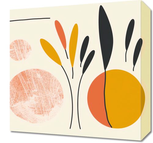 Obraz z serii boho zatytułowany Słoneczne Refleksy.Obraz czerpie z esencji natury i prostoty, przedstawiając stonowane, ale zarazem żywe kształty i linie roślin. Geometryczne kształty w ciepłej palecie barw - od głębokiego pomarańczu do delikatnego żółcienia - są wyróżnione na tle stonowanego beżu, tworząc wrażenie słońca i jego łagodnego światła rozpraszającego się w naturze. Dzieło to będzie pięknie komponować się z jasnymi, przestronnymi wnętrzami, wnosząc do nich poczucie ciepła i optymizmu. Idealnie nadaje się do dekoracji ściennej w salonach, jadalniach lub przestrzeniach oczekujących, gdzie może dodać odrobinę życia bez dominowania nad całością aranżacji. Zapewni lekki, ale wyrazisty akcent, który może inspirować i przynieść radość każdego dnia.