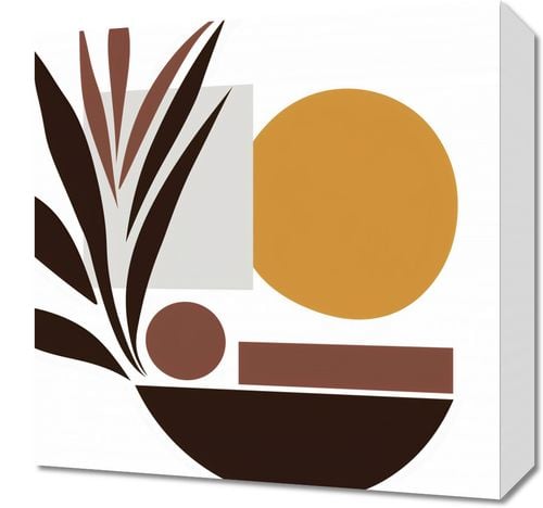 Plakat z serii minimalistyczne zatytułowany Stylizacja Roślin. Prezentuje on stylizowaną kompozycję roślinnych elementów i geometrycznych kształtów, wykorzystując ciepłą paletę brązów, beżów i głęboką ochrę. Proste formy tworzą spokojną, ale wyraźną grafikę, która wprowadza poczucie równowagi i spokoju. Ten obraz doskonale nada się do wnętrz w stylu mid-century modern, skandynawskich lub innych minimalistycznych przestrzeni, gdzie natura jest kluczowym elementem dekoracyjnym. Jego ziemiste barwy mogą dodać ciepła i naturalnego charakteru do każdego pomieszczenia, od salonu po spokojny kącik czytelniczy.