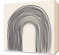 Obraz z serii boho zatytułowany Symetria Łuku. Grafika jest kwintesencją graficznej symetrii, przedstawiając hipnotyzujący motyw łuków, który wyłania się z rytmicznie powtarzających się, czarnych linii na beżowym tle. Kompozycja w formie bramy składa się z koncentrycznych półkoli, tworząc głęboką perspektywę, która przyciąga wzrok i prowadzi go ku centralnej, tajemniczej przestrzeni. Delikatne kropki podkreślają ścieżkę prowadzącą do wewnętrznego centrum, sugerując podróż ku własnej introspekcji. Ten minimalistyczny obraz będzie pasował do wnętrz o współczesnym charakterze, gdzie jego klarowna estetyka może stanowić przeciwwagę dla zgiełku codzienności, a także do przestrzeni w stylu zen, gdzie może wspomagać medytację i spokój umysłu.