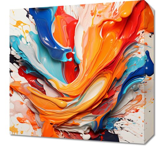 Obraz z serii abstrakcja zatytułowany Taneczne Fale. Wybuch jaskrawych barw, które splatają się w nieprzewidywalnych wzorach, przypominających taniec płynnych farb. Intensywne odcienie niebieskiego, czerwonego i pomarańczowego kontrastujące z delikatnymi akcentami bieli, dodają obrazowi dynamiki i życia. Świetnie sprawdzi się w nowoczesnych galeriach sztuki, studiach projektowych oraz przestrzeniach kreatywnych.