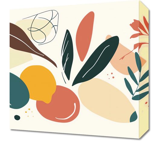 Obraz z serii minimalistyczne zatytułowany Taneczne Wizje. Grafika ta prezentuje zmysłową i swobodną kompozycję roślinnych motywów, abstrakcyjnych kształtów oraz płynnych linii, tworząc harmonijne połączenie kolorów takich jak terakota, musztarda i różne odcienie zieleni. Całość wywołuje uczucie lekkości i naturalnej równowagi. Ten obraz znakomicie wkomponuje się w przestrzenie, które cenią bliskość z naturą i sztukę o organicznych formach. Idealny do przestronnych salonów, spokojnych sypialni, jak również jako element ożywiający w minimalistycznych biurach. Może być też doskonałym uzupełnieniem galerii sztuki lub kawiarni, gdzie tło dla relaksujących rozmów tworzą właśnie takie subtelne dzieła.