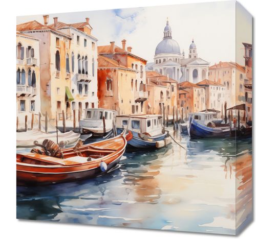 Obraz z serii pejzaże zatytułowany Wenecka Impresja, przedstawia malowniczą scenę kanałów Wenecji. Styl przypominający akwarelę, z miękkimi pociągnięciami i pastelowymi refleksami na wodzie, uchwycił zarówno spokój, jak i żywą atmosferę tego zabytkowego miasta. Łodzie i gondole są cicho przywiązane do nabrzeża, a w tle wznosi się charakterystyczna sylwetka bazyliki. Ten obraz przyciąga uwagę swoją grą światła i koloru, sugerując historie i tajemnice tkwiące w sercu Wenecji. Idealnie sprawdzi się jako element dekoracyjny w przestrzeniach, które pragną przywołać elegancję i historyczną głębię, takich jak salony, studia, biura, a nawet restauracje, które chcą dodać odrobinę włoskiego charakteru do swojego wnętrza.
