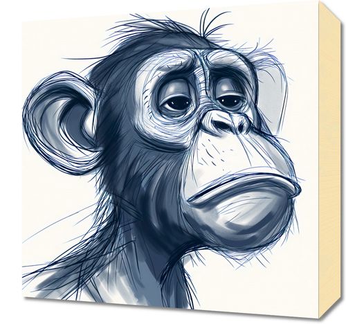 Obraz z serii wnętrza zatytułowany Zaduma. Prezentuje wyrazisty, monochromatyczny portret małpy z wyjątkowo ludzkim wyrazem twarzy, który wyraża głęboką refleksję. Subtelne detale i delikatne cieniowanie twarzy podkreślają emocjonalną głębię i osobowość przedstawionej postaci. Styl graficzny łączy w sobie elementy realizmu i kreskówki, co nadaje ilustracji lekkości, mimo jej poważnego nastroju. Ten obraz idealnie nadaje się do przestrzeni, które szukają dekoracji z charakterem, może to być salon, biblioteka, gabinet czy pokój młodzieżowy. Wprowadza on element introspekcji i jest zaproszeniem do kontemplacji, dodając wnętrzu głębi i wyjątkowego nastroju.