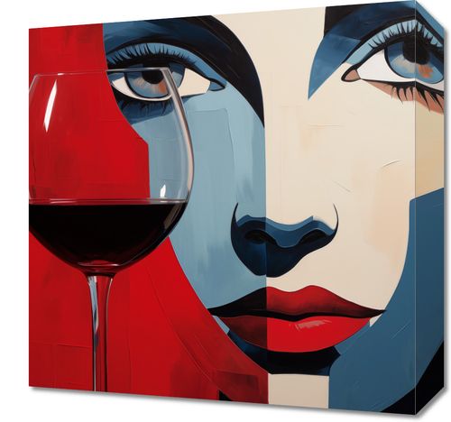 Obraz z serii wnętrza zatytułowany Żywa Czujność to dzieło, które przyciąga uwagę dynamicznym kontrastem i silnym wyrazem. Ta pełna wyrazu kompozycja łączy w sobie żywe czerwienie i chłodne błękity, tworząc tło dla zarysowanej sylwetki kobiety, której przyciągający wzrok, zdecydowany makijaż akcentuje jej głębokie spojrzenie. Kieliszek czerwonego wina na pierwszym planie nie tylko dodaje głębi obrazowi, ale także symbolizuje głębię i bogactwo smaków życia. Wielowymiarowość i złożoność tej sztuki idealnie odzwierciedla nowoczesne, kosmopolityczne przestrzenie, takie jak luksusowe lofty, awangardowe galerie sztuki lub eleganckie miejsca spotkań, gdzie kultura i pasja splatają się z codziennością.