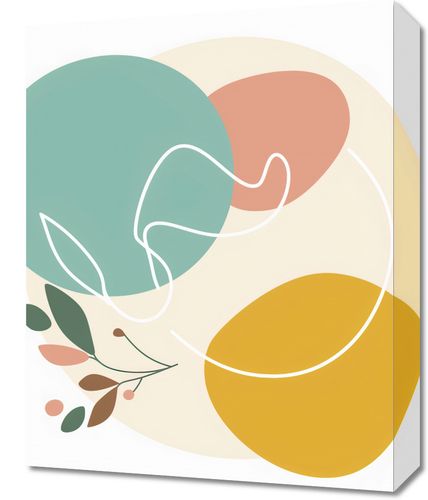 Obraz z serii minimalistyczne zatytułowany Delikatne Wiązanie. Na grafice widnieją płynne linie, które z łagodnością łączą się z organicznymi kształtami liści i abstrakcyjnymi formami w stonowanej palecie kolorystycznej z miętą, musztardą i delikatnym różem na kremowym tle. Ten obraz będzie pasował do przestrzeni, gdzie dominuje spokój i równowaga. Jego subtelne linie i miękkie kolory idealnie odnajdą się w salonach spa, jasnych biurach, czy sypialniach, gdzie mogą tworzyć atmosferę relaksu i harmonii.