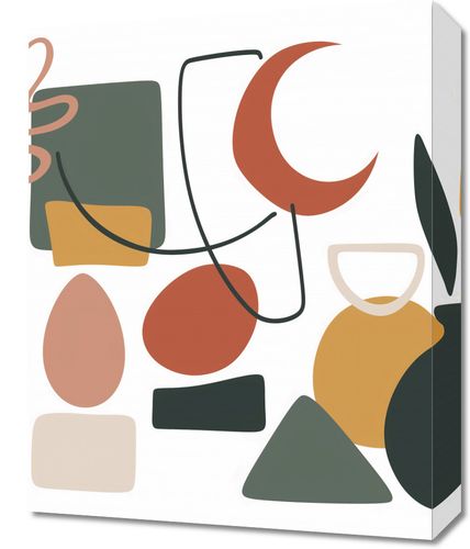 Obraz z serii minimalistyczne zatytułowany Formy Wyzwolone. Grafika składa się z zestawu prostej, ale wyrafinowanej kolekcji kształtów i form w przyjemnej, stonowanej palecie kolorów, z akcentami w odcieniach pomarańczu, zieleni, beżu i czerni. Elementy takie jak butelki, wazony i rośliny są przedstawione w sposób uproszczony, lecz stylowy, z nutą abstrakcyjnego charakteru. Obraz ten świetnie wkomponuje się w nowoczesne i artystyczne przestrzenie, takie jak designerskie biura, minimalistyczne salony, a nawet awangardowe galerie. Z jego pomocą można łatwo wprowadzić graficzną równowagę do wnętrza, zachowując przy tym lekkość i nowoczesność estetyki. Idealnie pasuje do miejsc, gdzie chce się podkreślić indywidualizm i miłość do sztuki.