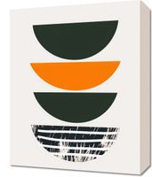 Obraz z serii boho zatytułowany Gra Tekstur to połączenie czystych, geometrycznych form z wyrazistą grą tekstur. Trzy półkoliste kształty w odcieniach głębokiej zieleni i żywej pomarańczy są ułożone w precyzyjny stos, tworząc zaskakującą głębię i zmysłową symetrię. Najniższa forma przerywa ten porządek, wprowadzając do dzieła dynamiczne, surowe detale, przypominające efekt artystycznego, spontanicznego malowania lub drapowania. Ten obraz jest idealnym wyborem dla wnętrz, które doceniają silne, graficzne elementy oraz surowy, industrialny klimat, pasując zarówno do minimalistycznych, jak i bardziej eklektycznych przestrzeni.