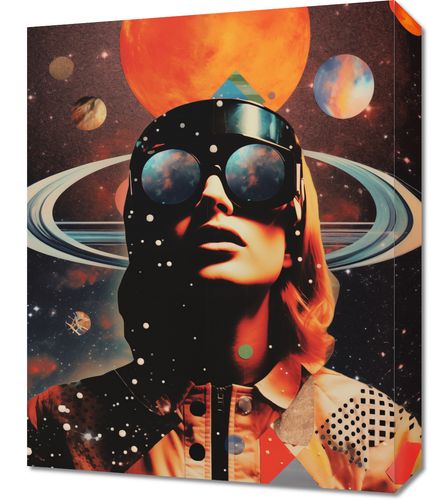 Obraz z serii pop art zatytułowany Kosmiczne Wizje. Ta odważna i wizjonerska grafika łączy w sobie ikonę mody z elementami uniwersum kosmicznego, tworząc surrealistyczny portret kobiety, której twarz i ciało przenikają się z gwiazdami, planetami i galaktykami. Okulary odbijające kosmos i pierścienie Saturna otaczające głowę dodają obrazowi elementów fantastyki naukowej. Obraz przyciąga uwagę i inspiruje, stanowiąc idealny wybór dla tych, którzy cenią sobie oryginalność i kosmiczne motywy, doskonale nadaje się do nowoczesnych salonów, młodzieżowych pokojów czy przestrzeni artystycznych.