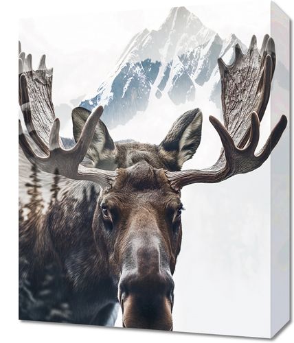 Obraz z serii natura zatytułowany Łoś Duch Lasu to majestatyczne przedstawienie łosia, którego potężne poroże przeobraża się w górski krajobraz. Na pierwszym planie widzimy głęboki, przenikliwy wzrok łosia, skupionego na widzu, z pięknymi, szczegółowo odwzorowanymi detalami sierści. Jego rozłożyste poroże płynnie przeistacza się w ośnieżone szczyty, co symbolizuje jego władzę i jedność z dziką przyrodą. Jasne, lekko zamglone tło sugeruje poranne światło, dodając plakatowi poczucia tajemnicy i dzikiego piękna. Ten obraz doskonale sprawdzi się w przestrzeniach inspirowanych naturą, takich jak chaty górskie, domy myśliwskie, lub jako wyraz głębokiego szacunku dla dzikiej przyrody w salonach i przestrzeniach wspólnych miłośników natury.