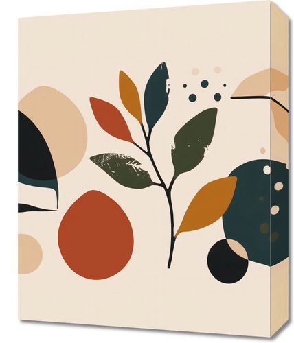 Obraz z serii minimalistyczne zatytułowany Ogród Melancholii. Grafika ta przedstawia kolekcję stylizowanych liści i kształtów, które tworzą spokojną i harmonijną kompozycję w ciepłej palecie barw - od głębokiego granatu po delikatne odcienie beżu i ochry, z akcentami w kolorze terrakoty. Każdy element graficzny, choć uproszczony, jest bogaty w detale, co nadaje plakatowi subtelną głębię i teksturę.Ten obraz będzie pięknie wyglądał w wnętrzach, gdzie naturalne materiały są na czele - takich jak drewno, kamień lub lniane tkaniny. Jego prosta, ale elegancka estetyka sprawia, że jest to idealny dodatek do salonu, jadalni, a nawet kuchni, wprowadzając do pomieszczenia spokój i równowagę.