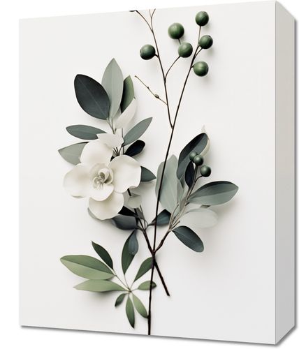 Obraz z serii wnętrza zatytułowany Papierowy Kwiat. Ten obraz przedstawia delikatną kompozycję wykonaną z papieru, która odwzorowuje naturę z zadziwiającą dokładnością. Wykwintna papierowa magnolia w towarzystwie subtelnego listowia i jagód, wszystkie w spokojnych, pastelowych tonach, tworzą obraz pełen elegancji i delikatności. Idealny dla przestrzeni, które cenią sobie minimalizm i spokój, jak skandynawskie wnętrza, pracownie projektowe czy przestrzenie relaksacyjne, gdzie taka forma sztuki może wprowadzić wyciszającą atmosferę i dodać wnętrzu subtelnej, artystycznej nuty.