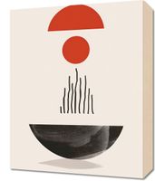 Obraz z serii boho zatytułowany Półokrągła Forma.Na tej grafike zmysłowe, geometryczne kształty tworzą obraz, który równie dobrze może być interpretacją wschodu słońca, jak i abstrakcyjnym przedstawieniem równowagi w przyrodzie. Półokrągła, czerwona forma nad czarną, pionową linią może sugerować słońce wschodzące nad cichym jeziorem, a czerwony krąg pośrodku może być metaforą istoty życia. Duża, ciemna forma na dole to ziemia lub możliwe odbicie, a całość kreuje uczucie pełni i harmonii.Plakat wprowadzi do wnętrza poczucie spokoju i wyważenia. Jest idealny dla tych, którzy chcą dodać do swojej przestrzeni element medytacyjny, pobudzający do refleksji. Doskonale pasuje do minimalistycznych salonów, biur, a także jako element zen w sypialniach, wprowadzając atmosferę oczyszczenia i wewnętrznej równowagi.