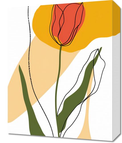 Obraz z serii minimalistyczne zatytułowany Przerysowany Tulipan, przedstawia stylizowany, rysunkowy tulipan w odcieniach ciepłej czerwieni, wyłaniający się z delikatnego tła w odcieniach beżu i żółci. Jego proste linie i odważne kolory tworzą spokojną, ale zarazem żywą kompozycję, która odświeży każde wnętrze. Doskonale sprawdzi się w jasnych salonach, sypialniach czy biurach, gdzie może dodać subtelnej elegancji lub stać się miłym akcentem na tle bardziej neutralnej dekoracji.