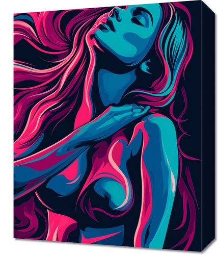 Obraz z serii abstrakcja zatytułowany Rozkwit. Przedstawia on kobietę zanurzoną w oceanie żywych barw, z włosami i kształtami płynącymi w dynamicznych, falujących formach. Intensywne odcienie różu, błękitu i fioletu łączą się, tworząc wizualną symfonię, która jest zarazem energetyczna, jak i spokojna. Portret kobiety, choć abstrakcyjny, wyraża siłę i delikatność, sugerując wolność i bezkresną kreatywność. Ten obraz doda życia każdej przestrzeni, będąc doskonałym wyborem dla śmiałych, współczesnych wnętrz, artystycznych studiów, a także jako inspirujący element w modnych salonach.