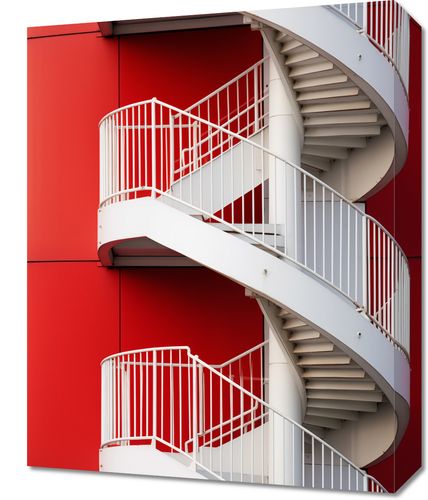 Obraz z serii wnętrza zatytułowany Schody do Niebios. Ten obraz to dynamiczne zestawienie białej, spiralnej klatki schodowej z intensywnie czerwonym tłem ściany budynku. Czyste linie, krzywe i kolorystyczny kontrast tworzą wyrafinowaną kompozycję, która łączy funkcjonalność z estetyką. Idealny dla nowoczesnych przestrzeni komercyjnych i mieszkalnych, które chcą wnieść element współczesnego designu i architektonicznej odwagi, ten plakat jest doskonałym wyborem dla miłośników designu, architektów oraz wszystkich, którzy cenią sobie wyrazistość i mocne, wizualne wrażenie.