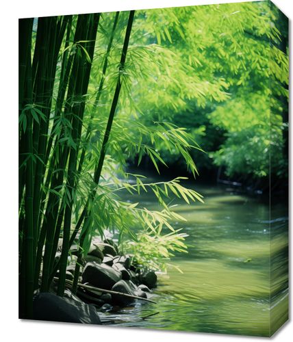 Obraz z serii natura zatytułowany Spokój Bambusów. Ukazuje on idylliczny zakątek przyrody, gdzie zielone pędy bambusa delikatnie zginają się nad błogim, spokojnie płynącym strumieniem. Gra światła i cienia na liściach bambusa tworzy wrażenie głębi i spokoju, zaś szemrząca woda dodaje uczucie świeżości i czystości. Ten obraz oddaje piękno i spokój odosobnionego zakątka natury, jest więc idealny dla przestrzeni relaksacyjnych takich jak spa, pokoje do medytacji lub jako ukojenie w zgiełku codzienności w domowych wnętrzach. To doskonała dekoracja dla tych, którzy pragną wprowadzić element natury i harmonii do swojego otoczenia.