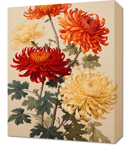 Obraz z serii natura zatytułowany Tańczące Chryzantemy. Płynne, spirale płatków w odcieniach czerwieni, pomarańczy i kremu, tworzą dynamiczny ruch, który przyciąga wzrok i przywołuje uczucia radosnego zmysłowości. Zielone liście kontrastujące z głębokimi odcieniami kwiatów dodają głębokości i tekstury kompozycji. Ten wizualny spektakl podkreśla naturę chryzantemy jako symbolu odnowy i nieśmiertelności. Doskonale wpasuje się w eleganckie spa, luksusowe hotelowe lobby oraz wnętrza w stylu vintage.BLEJTRAMABlejtrama, na którą naciągane jest płótno, wykonana jest z naturalnego drewna sosnowego. To mocne i solidne drewno stanowi jedno z najbardziej ekologicznych rozwiązań, gdyż jest łatwe w obróbce. Dodatkowym atutem jest fakt, że sosna rośnie w Polsce, co gwarantuje lokalną obróbkę materiału. Obraz na takiej blejtramie jest trwały i wytrzymały. Ramki do zdjęć nie są wliczone w cenę wydruku. Jeśli chcesz je nabyć, prosimy o dokonanie zakupu oddzielnie.