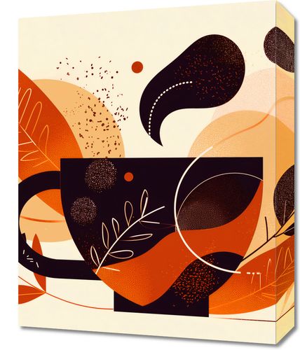 Obraz z serii minimalistyczne zatytułowany Wachlarz Ciepła. Ta kompozycja charakteryzuje się bogatymi, ciepłymi barwami jesieni, łącząc brązy, pomarańcze i czernie z delikatnymi liśćmi i abstrakcyjnymi kształtami, co razem tworzy dynamiczną, ale harmonijną całość.Ten obraz będzie idealnym dodatkiem do przestrzeni, które chcą wnieść trochę ciepła i artystycznego charakteru do swojego wnętrza. Jego ziemiste barwy i wzory mogą przyciągnąć oko w salonie, jadalni, czy współczesnej sypialni, wnioskując poczucie komfortu i naturalnego piękna.