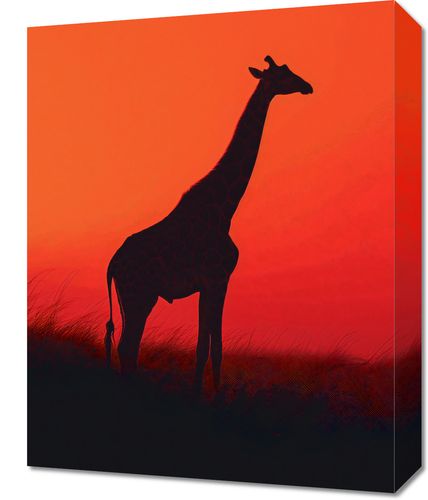 Obraz z serii natura zatytułowany Żyrafa w Czerni. Przedstawia majestatyczną sylwetkę żyrafy na tle zachodzącego słońca. Intensywny czerwony kolor nieba tworzy dramatyczne tło dla czarnej sylwetki, która wyłania się wśród wysokich traw sawanny. Subtelny gradient czerwieni przywołuje ciepło afrykańskiego słońca i dzikość naturalnego środowiska. Obraz idealnie oddaje esencję dzikiej przyrody i będzie pięknym dodatkiem do każdego wnętrza, przyciągając wzrok i inspirując do marzeń o podróżach. Doskonale pasuje do salonów w stylu etno, przestrzeni publicznych związanych z podróżami oraz pokojów o tematyce przyrodniczej.