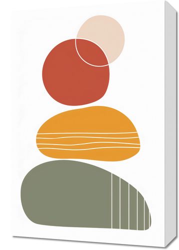 Obraz z serii minimalistyczne zatytułowany Formy w Równowadze. Prezentuje on harmonijne układanie się prostych, geometrycznych form w równowagę, które łączą w sobie różnorodność barw i tekstur. Kremowe, czerwone i musztardowe odcienie współgrają z spokojną zielenią, tworząc kompozycję, która jest zarazem odważna, jak i uspokajająca. Obraz jest przykładem jak prosta abstrakcja może przenieść nastrój równowagi i spokoju do dowolnej przestrzeni. Idealny do nowoczesnych mieszkań, biur kreatywnych, a nawet do jadalni, gdzie może stanowić subtelny, ale interesujący element dekoracyjny.
