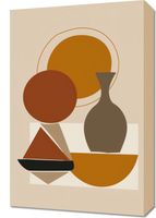 Obraz z serii minimalistyczne zatytułowany Geometryczna Utrata.Ta ilustracja łączy prostotę z głębią, wykorzystując geometrię do przedstawienia bardziej złożonej idei. Kompozycja składa się z płaskich, wyraźnie zarysowanych kształtów i bloków kolorów, które układają się w zrównoważony, choć niekonwencjonalny sposób. Kolory są ograniczone do ciepłych tonów ziemi, co dodaje dziełu spokojnego charakteru. Wydaje się, że obraz jest nie tylko estetycznie przyjemny, ale też niesie ze sobą pewną tajemniczość; kształty mogą być interpretowane jako przedmioty codziennego użytku, a ich ułożenie wzbudza ciekawość i zaprasza do refleksji nad ich znaczeniem. Ta praca mogłaby być doskonałym dodatkiem do współczesnych przestrzeni, które cenią sobie minimalistyczne, ale przemyślane design.