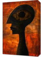 Obraz z serii abstrakcja zatytułowany Głęboki Wgląd przedstawia enigmatyczną sylwetkę o ludzkiej formie z dominującym, przeskalowanym okiem w miejscu głowy, wpatrującym się w widza z niezwykłą intensywnością. Tło obrazu jest abstrakcyjne, z bogatymi pociągnięciami pędzla w ciepłych odcieniach czerwieni i pomarańczy, sugerujące płomienne otoczenie lub burzliwe emocje. Sylwetka postaci jest zarysowana w głębokim czernią, co kontrastuje z jaskrawym tłem, a tekstura przypominająca sieć w obrębie oka może symbolizować skomplikowaną sieć ludzkich doświadczeń i percepcji. Dzieło to może wywoływać rozważania na temat ludzkiej świadomości i głębszego znaczenia bycia obserwatorem. Ten obraz będzie pasował do przestrzeni, które cenią głęboką myśl i filozoficzne dyskusje, takich jak biblioteki, studia artystyczne lub prywatne gabinety.