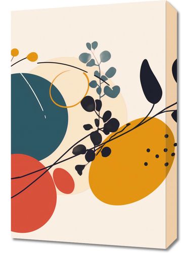 Obraz z serii minimalistyczne zatytułowany Kolaż Przyrody. Grafika ta łączy organiczne kształty i roślinne motywy z geometrycznymi figurami. Prezentuje bogate połączenie kolorów - od głębokiego granatu przez czerwień, musztardowy żółty po delikatne beże. Wyróżnia się przez obecność roślinnych sylwetek na pierwszym planie, które nadają kompozycji naturalnego charakteru.Ten obraz będzie wspaniałym dodatkiem do wnętrz, gdzie panuje spokój i równowaga. Jego stonowana, ale wyrazista kolorystyka sprawi, że będzie doskonałym uzupełnieniem przestrzeni skandynawskich, minimalistycznych, a nawet boho. Wydaje się być idealnym wyborem do salonu, sypialni lub miejsca pracy dla osób ceniących sobie połączenie sztuki i natury, gdzie mógłby stać się centralnym elementem dekoracyjnym.