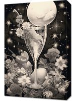 Obraz z serii wnętrza zatytułowany Kosmiczny Eliksir. Niesamowita kompozycja przedstawiająca kieliszek, z którego wylewa się galaktyczny nektar, otoczony kwiatami i roślinami w monochromatycznych barwach. Centralnym punktem jest lśniąca pełnia księżyca, której blask odbija się w szkle, tworząc atmosferę tajemnicy i magii. Gwiazdy migoczą w tle, nadając całości głębokiego, nieskończonego wymiaru. Delikatne linie i szczegóły graficzne wzbogacają kompozycję, czyniąc ją idealnym wyborem do nowoczesnych salonów, galerii sztuki oraz miejsc o tematyce astronomicznej.