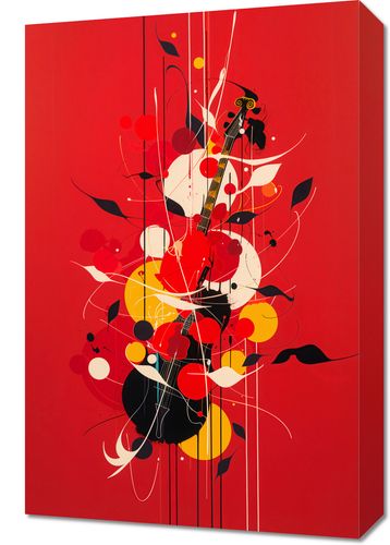 Obraz z serii abstrakcja zatytułowany Melodyjna Barwa to dynamiczna kompozycja, w której centralnym motywem jest skrzypce, będące zarówno źródłem muzyki, jak i inspiracji dla wizualnej ekspresji. Skrzypce są otoczone przez abstrakcyjne kształty i linie w żywych kolorach czerwieni, żółci i czerni na intensywnie czerwonym tle, które razem tworzą wrażenie ruchu i rytmu. Białe linie wydają się być odzwierciedleniem dźwięków płynących ze strun instrumentu, rozchodzących się w przestrzeni i tworzących harmonijną całość z otaczającymi je formami. Ten obraz jest celebracją muzyki i jej wizualnej interpretacji, idealny dla przestrzeni, w których tworzy się lub słucha muzyki, takich jak sale koncertowe, pokoje muzyczne, czy jako elegancki akcent w domowych wnętrzach miłośników muzyki.