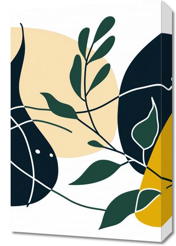 Obraz z serii minimalistyczne zatytułowany Natury Spojrzenie. Grafika jest pełna abstrakcyjnych i stylizowanych roślinnych motywów, splecionych z subtelnie przekładającymi się kształtami w tonacji beżu, czerni i musztardy. Delikatne linie dodają delikatności i ruchu, co czyni całość przyciągającą wzrok i wywołującą uczucie spokoju. Obraz idealnie nadaje się do przestrzeni, które cenią spokój i naturalną elegancję, takich jak salon czy pokój relaksu. Może także stanowić subtelny, lecz wyrazisty element w przestrzeniach biurowych, przynosząc poczucie spokoju i harmonii.