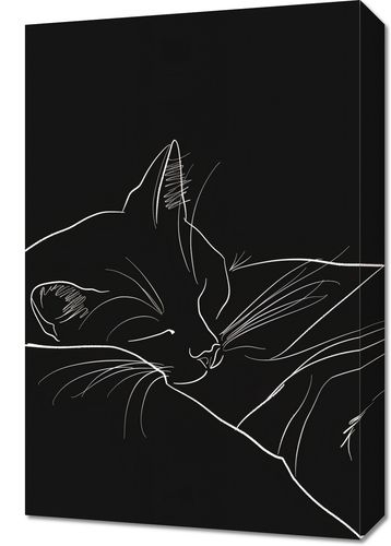 Obraz z serii minimalistyczne zatytułowany Nocny Spokój przedstawia subtelnie zarysowanego kota głęboko pogrążonego we śnie, umieszczonego na tle czarnej, nieskończonej przestrzeni. Białe linie delikatnie kreślą kształt zwierzęcia, uwypuklając jego spokojną postawę i łagodne rysy twarzy. To proste, lecz wyraziste dzieło sztuki przepełnione jest spokojem i elegancją, a kontrastowy czarno-biały motyw przyciąga wzrok i wprowadza do wnętrza atmosferę tajemniczości i wyciszenia. Idealny dla przestrzeni, które są azylem relaksu i odpoczynku, jak sypialnie czy zakątki do medytacji.