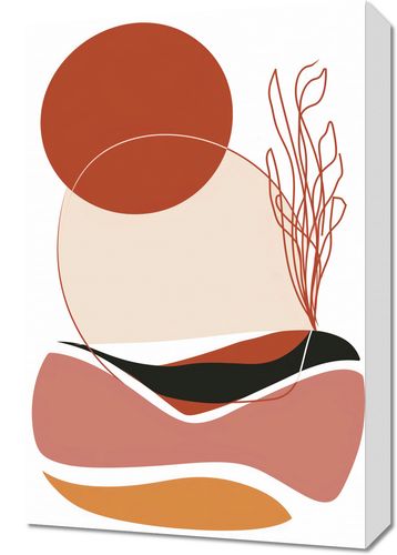 Obraz z serii minimalistyczne zatytułowany Popołudnie. Praca ta zachwyca swoją spokojną i wyważoną kompozycją, w której delikatne linie i kształty tworzą abstrakcyjny krajobraz. Głębokie czerwienie harmonizują z ciepłymi beżami i akcentami pomarańczy, a zarysowane rośliny dodają obrazowi organicznego charakteru. Ten plakat będzie doskonałym dodatkiem do wnętrz, które pragną wprowadzić elementy sztuki współczesnej, jednocześnie zachowując ciepło i przytulność. Doskonale odnajdzie się w salonach, kącikach do odpoczynku, czy też jako wyjątkowy akcent w przestrzeni biurowej. Zapewni każdej przestrzeni uczucie wyciszenia i estetycznej przyjemności.