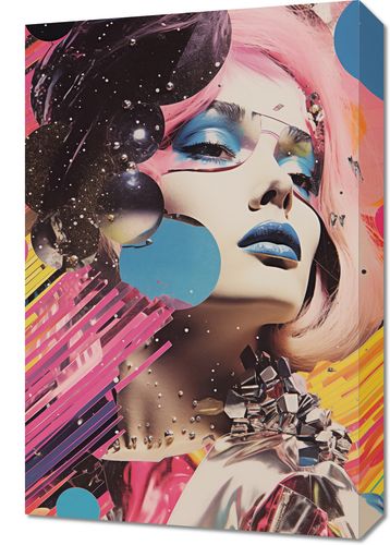 Obraz z serii pop art zatytułowany Portret Neo. Ta dynamiczna i kolorowa grafika łączy w sobie elementy pop-artu z awangardowym stylem, prezentując kobietę z różowymi włosami i intensywnie niebieskim makijażem. Abstrakcyjne formy i energetyczne linie w tle nadają kompozycji współczesnego wyrazu. Obraz ten jest odważnym oświadczeniem w świecie mody i sztuki, idealny dla przestrzeni o nowoczesnym designie, takich jak salony fryzjerskie, studia mody czy jako ekstrawagancki akcent w domowych wnętrzach ceniących oryginalność i ekspresję.