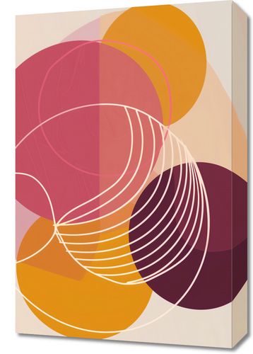 Obraz z serii minimalistyczne zatytułowany Przenikanie Ciepła. Grafika ta eksploruje delikatne gradacje kolorów i złożoność form poprzez nakładanie się i przenikanie okręgów. Subtelne linie tworzą głębię, a paleta ciepłych czerwieni, różu i złota przypomina o zmianach światła o zachodzie słońca. Obraz ten idealnie pasuje do nowoczesnych wnętrz, które cenią sobie ciepło i delikatność w designie, takich jak salon spa, joga studio lub medytacyjna przestrzeń domowa. Jego spokojna aura może także wzbogacić eleganckie biuro lub poczekalnię, tworząc atmosferę spokoju i ciepła.